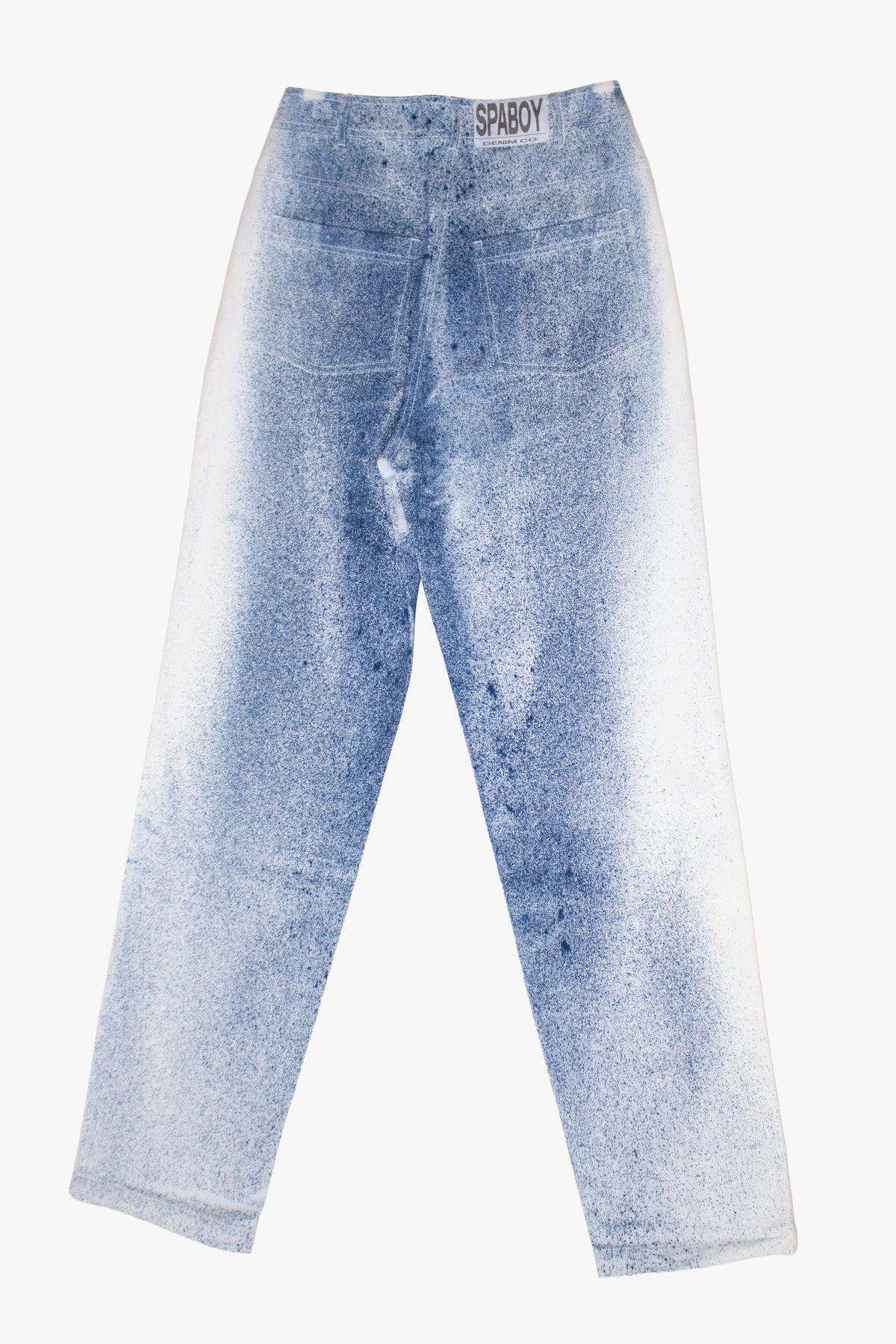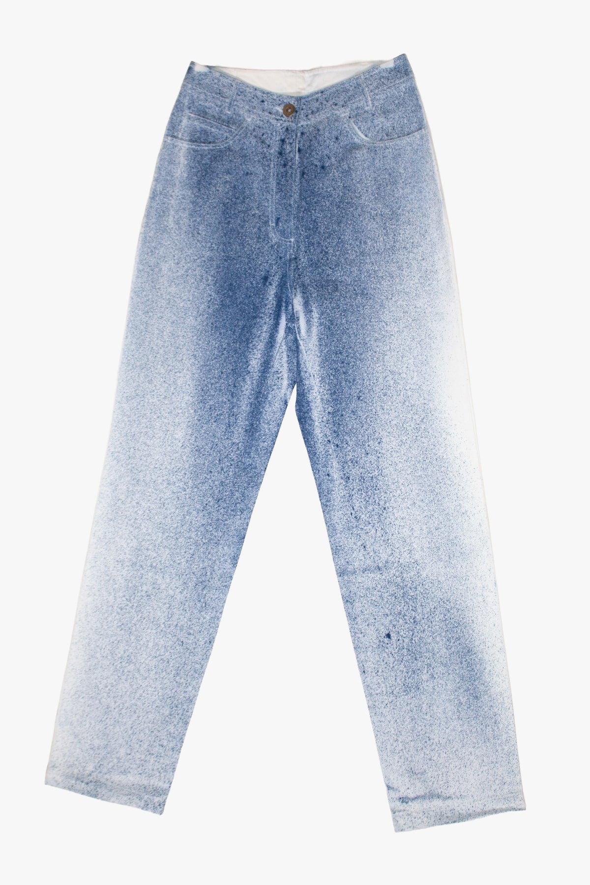 BLEACHED AND OVERDYED IN SKY BLUE. EACH PAIR HAS UNIQUE MARKING.