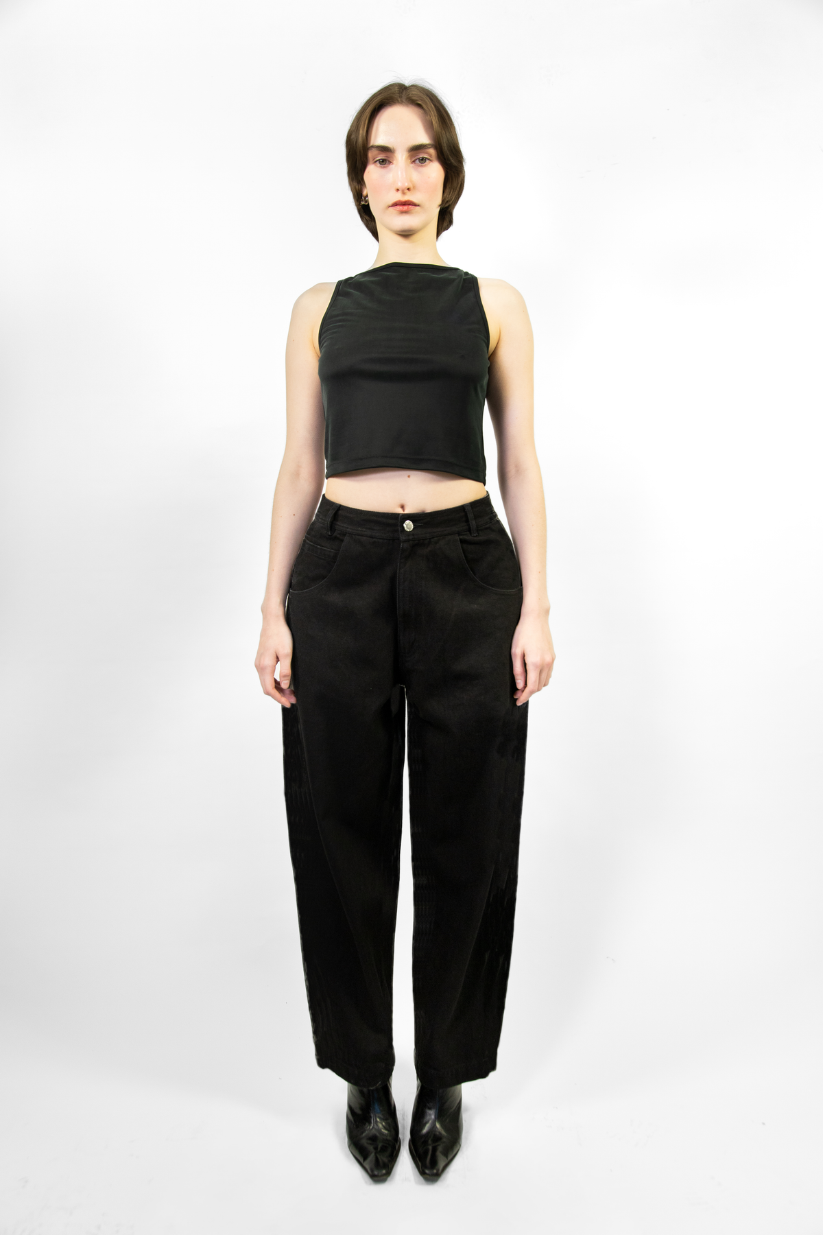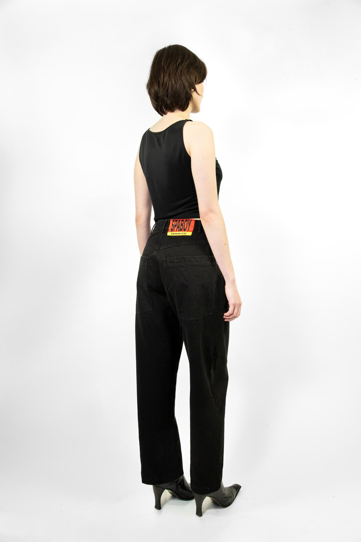 MADE ON NOS JEANS. CLASSIC HIGH WAISTED FITTED JEAN WITH A STRAIGHT WIDE LEG.